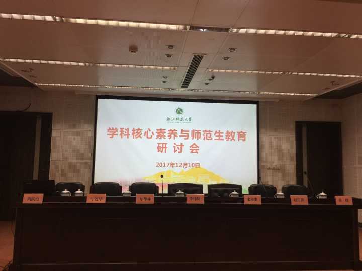 12月10日上午8:30,在浙江师范大学行政中心南楼多功能会议室,召开了以“学科核心素养培养与师范生教育”为主题的研讨会。浙江师范大学副校长李伟健教授、浙江师范大学本科教学部主任赵雷洪教授、浙江师范大学教师教育学院周跃良教授参加了研讨会开幕式,山东师范大学教务处处长毕华林教授;湖南师大教师教育学院院长宋善炎教授;南京师范大学宁连华教授三位国内著名教授专家齐聚一堂。会议由浙江师范大学教师教育学院副院长黄晓教授主持,李副校长代表学校致欢迎辞,研讨会承办单位浙江师范大学教师教育学院院长周跃良讲话。参加本次研讨会的还有教师教育学院从事教师教育与学科教育的教师和研究生。
