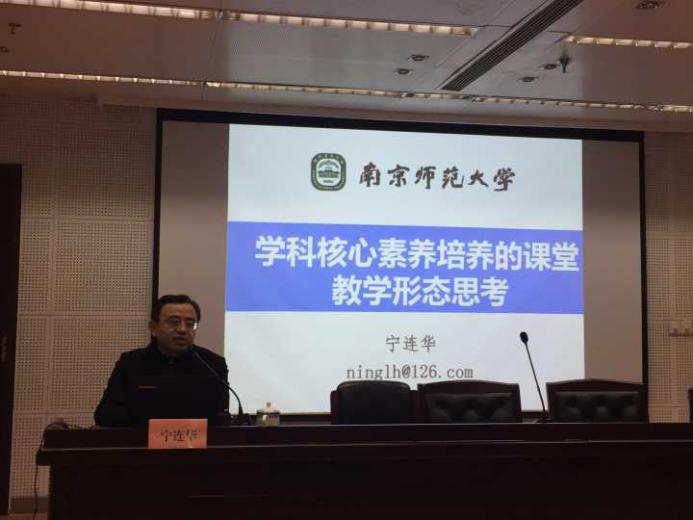 宁连华教授做了主题为“学科核心素养培养的课堂教学形态思考”的报告。宁教授阐述了学科核心素养的内涵,学科核心素养诉诸于怎样的课堂教学形态,哪种教学形态更优质,优质教学的实证研究之反思,优质教学的本质——走心的教学等几大板块的内容。最后宁连华教授提出自己对于学科核心素养发展的看法,希望基于核心素养的学科教学不要走偏。