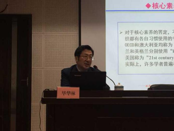 毕华林教授以“核心素养背景下教师教育改革的思考”为题,针对国内外组织对“核心素养”的内涵和背景进行了梳理,并对基于理科课程的核心素养体系、教师核心素养作了解读,着重以化学学科为例,畅谈了卓越中学化学教师教学能力的构成。同时提出了对教师教育的感受和启示,即将师德教育贯穿师范生培养的全过程,将核心素养的基本内容和要求整合到相关教师教育课程中,增进学生对核心素养的理解,促进师范生对学科核心素养的理解,以点带面的促进以学科核心素养为基本的教学改革。