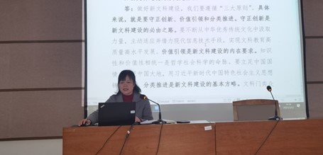 首先,雷水凤副院长阐释了“新文科”的内涵,新文科是相对于传统文科而言的,以全球新科技革命、新经济发展、中国特色社会主义进入新时代为背景,突破传统文科的思维模式,以继承与创新、交叉与融合、协同与共享为主要途径,促进多学科交叉与深度融合,推动传统文科的更新升级,从学科导向转向以需求为导向,从专业分割转向交叉融合,从适应服务转向支撑引领。她指出要顺应新时代哲学社会科学发展的新要求,着重强调新文科建设发展理念,有序推进新文科建设与改革。