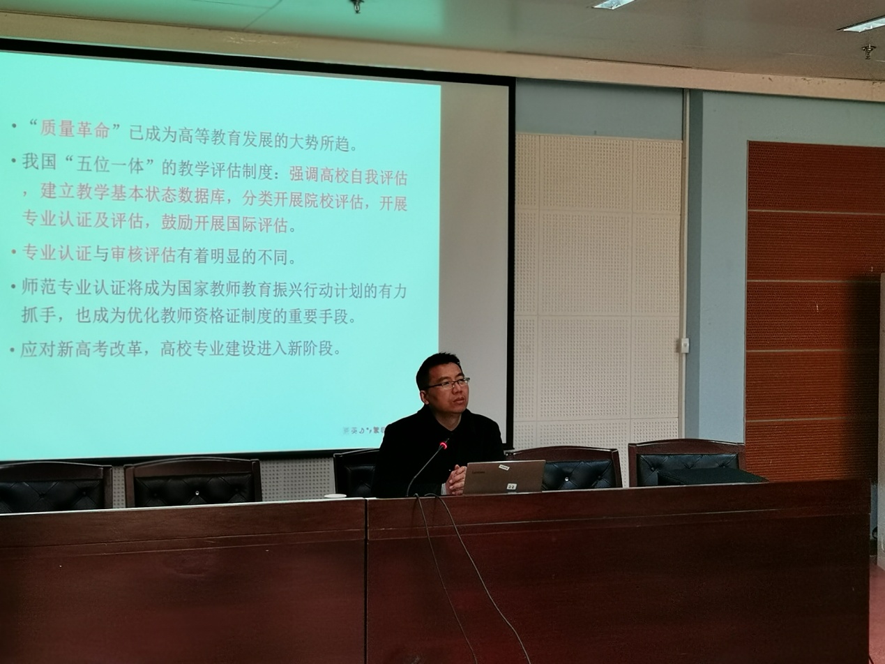 会议期间,葛永海主任为全体督导做了“师范专业认证与卓越教师培养”的专题培训,详细解读了师范专业认证的时代背景与指标体系、认证的三大理念、专业认证的核心内涵和特点、中学教育专业认证标准(第二级)、课程体系的产出导向等内容。会议还组织学习了“本科教学部2021年工作要点”,讨论并确定了开展全校研究性课程和教学陈述制度专项督查的具体调研工作方案。