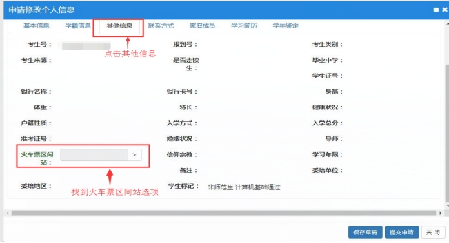 3. 点击“其他信息”,找到火车票区间站选项;
