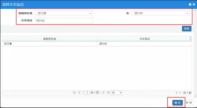 4. 选择家庭所在地的火车站,最后点“确定”。