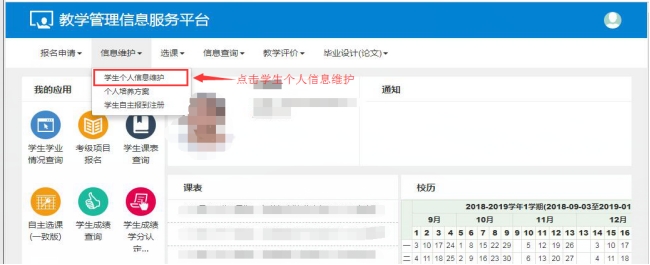 1. 登录教务系统,选择“学生个人信息维护”;