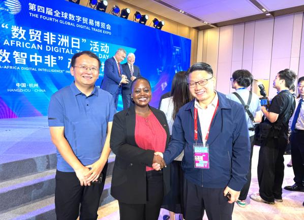展会期间,多位与经管学院人才培养、学术研究紧密关联的代表出席相关活动,为师生专业实践提供了宝贵的行业视角与资源支持。达之路国际控股集团董事长、经管学院国际商务专业实践导师何烈辉博士,结合自身在全球数字贸易与中非经贸合作领域的丰富经验,分享了数字贸易企业运营逻辑与国际市场拓展策略;莱索托驻华大使馆公使衔参赞、经管学院IMBA优秀校友Lineo Melida Kobeli(中文名:李诺)受邀参与活动国际交流环节,以“从业者+校友”双重身份与师生分享国际数字贸易政策环境与跨文化合作要点;经管学院国际商务专业硕士点负责人黄玉沛老师带队,引导学生结合专业课程知识,针对性观察数字贸易展区的技术创新、企业案例与合作项目,帮助学生搭建“理论-实践-行业”的认知桥梁。