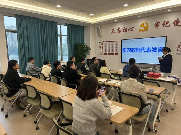走访期间,实习生代表汇报了实习以来的成长进步,分享了自己在实习实践中的心得体会。学院领导和老师们还现场听取了多位实习代表的公开课,并围绕课堂教学与实习单位带队老师开展研讨。