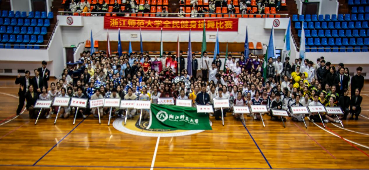 图1 浙江师范大学第十一届阳光体育运动会全民健身操舞比赛集体合照