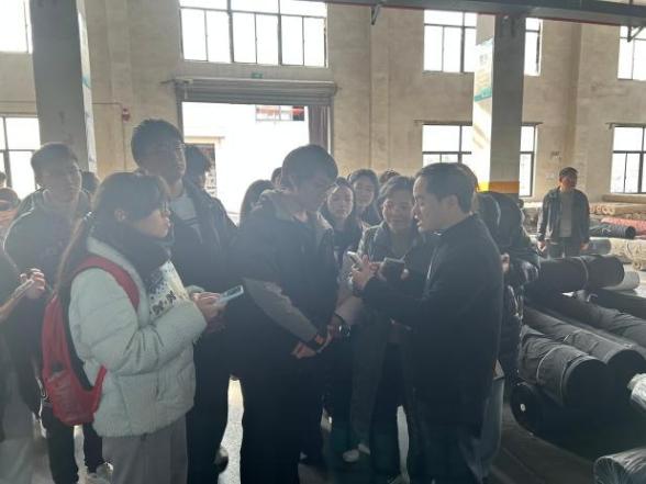 英麒科技集团是一家专业生产高档差异化纱线、高档差异化色织面料的国家高新技术企业,拥有“省级高新技术企业研究开发中心”“省级企业研究院”等荣誉,是兰溪市纺织行业协会会长单位。其现代化的智能制造体系为教学提供了鲜活载体。前期集团财务总监舒黎明先生做了细致的准备和安排,同学们到达后舒总监和工作人员首先带领同学们参观了主要生产流程,包括智能化纺纱、织布及后期整理生产线。从原料到成品的全自动流程、实时数据的数字化看板,不仅让同学们直观感受了智能制造的精益管控,更深刻理解了科技创新如何驱动实体经济发展,以及财务管理作为企业“神经系统”在价值创造中的核心作用。这趟参观,是一次从课本图表到车间数据的认知飞跃,也是一次对科技兴国、实业报国理念的切身感悟。