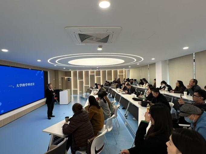 下午,陈时见教授作了题为《大学学科建设与发展的路径选择》的专题报告。他从大学的学科逻辑、学术研究的范式创新、学科发展的战略路径以及教师职业生涯的成长通道等四个维度,系统分享了其深厚的理论思考与丰富的实践经验,为在场教师带来了深刻的启发。