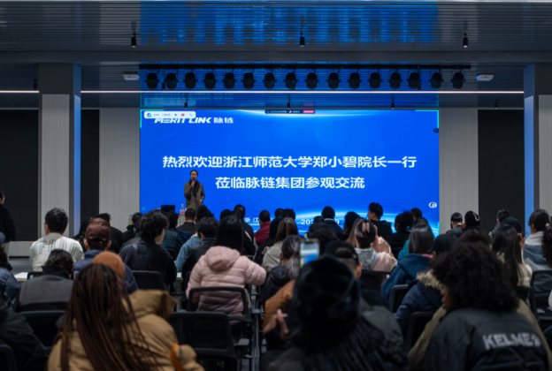 为深化国际商务实践教学改革,推动专业理论与产业实践深度融合,2025年12月9日下午,在郑小碧副院长的带领下,经济与管理学院(中非国际商学院)国际经济与贸易(全英文)专业及国际商务专业硕士70余名师生赴脉链集团开展了一堂生动的“企业课堂”实践教学课。此次活动是学院响应国家“产业出海”战略、深化产教融合的重要举措,旨在通过与龙头企业深度对接,优化人才培养体系,为产业带全球化注入“智力动能”,同时为师生搭建国际化实践平台。