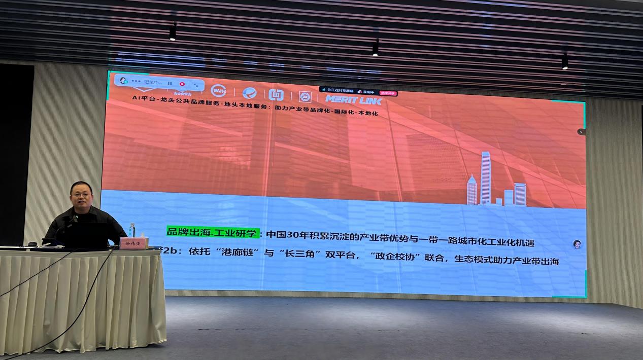 在随后召开的产教融合协同育人座谈会上,脉链集团董事长徐伟强先生为师生做了题为“品牌出海·工业研学:中国30年积累沉淀的产业带优势与‘一带一路’城市化工业化机遇”的专题讲座。他结合集团从传统制造商迭代为产业数智化跨境服务平台,推动中国企业打破传统代工2:8利益格局,在全球价值链实现4:6乃至6:4的价值重构。随后,徐总进一步分享了企业通过数字化系统与AI技术打破传统代工利益格局、在全球价值链实现价值重构的创新路径。